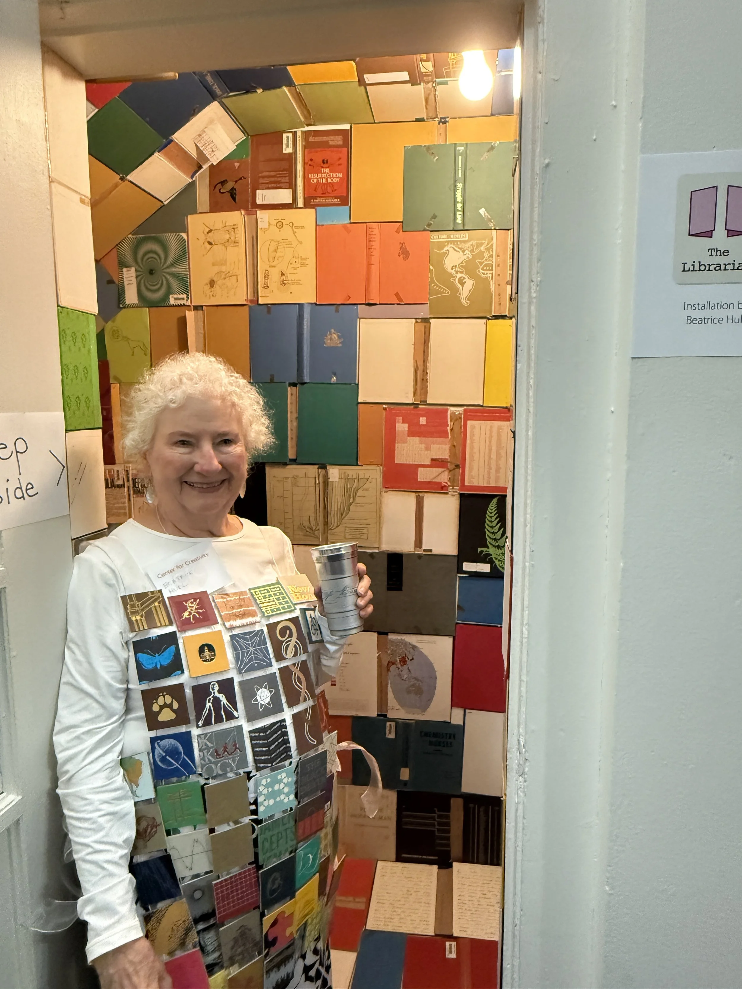 So here you are, in a decommissioned phone booth, surrounded by book covers with their insides torn out. Local libraries pulled these from circulation and saved them for me to make things with. Think of them as proxies for the more than 10,000 instances of canceled books—affecting over 4,200 unique titles—in U.S. public schools during the 2023–24 school year. I lived through the Red Scare and McCarthyism of the 1950s and wish the fear of others wasn’t happening all over again.